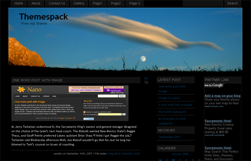 themespackMagical sunset Wordpress Theme comes with the following features:* Widget Ready,cloud,adsense ready. A free Wordpress theme which was recently released. It is fully compatible with wordpress 2.3.2 and has tagging and tag cloud enabled.