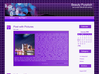 Beauty Purplish Free WP Theme with two columns layout, right sidebar,valid CSS and valid XHTML, designed in purple colors.