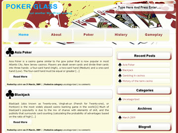 Poker Glass - Free Poker Wordpress Theme for Blogs.